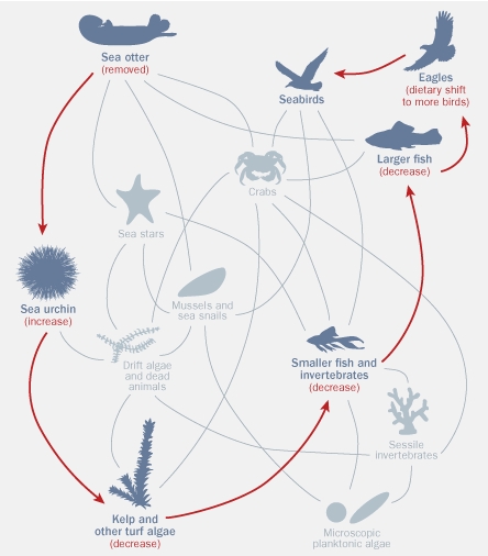 Here is a brief excerpt from that article. (Google [Removal of top predators trickles through the food web].)
