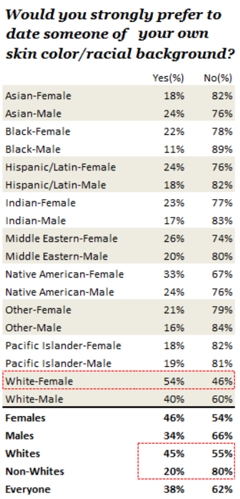 When I realize any aspect of my thoughts or knowledge are not impartial, I know my thinking is still biased. Knowing that, I can ponder deeper until I see the impartial whole. Still, thinking and feeling are truly separate issues. Animals only feel, we do both. Feeling attraction to oneās race is natural, as that survey suggests. As they say, āBirds of a feather flock togetherā, which also includes coming together via common interests and purpose. The problem, the disease, arises when feeling drives thought so much that we believe our thoughts accurately reflect reality.