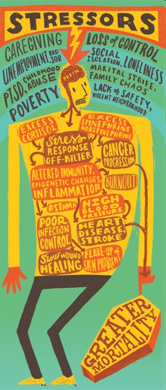 But an everyday, steady release of stress hormones trips other switches throughout the body in a drumbeat that steadily poisons the system — spreading biological changes like wildfire.